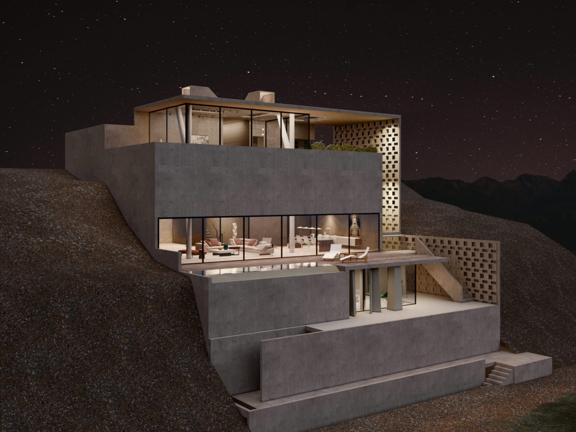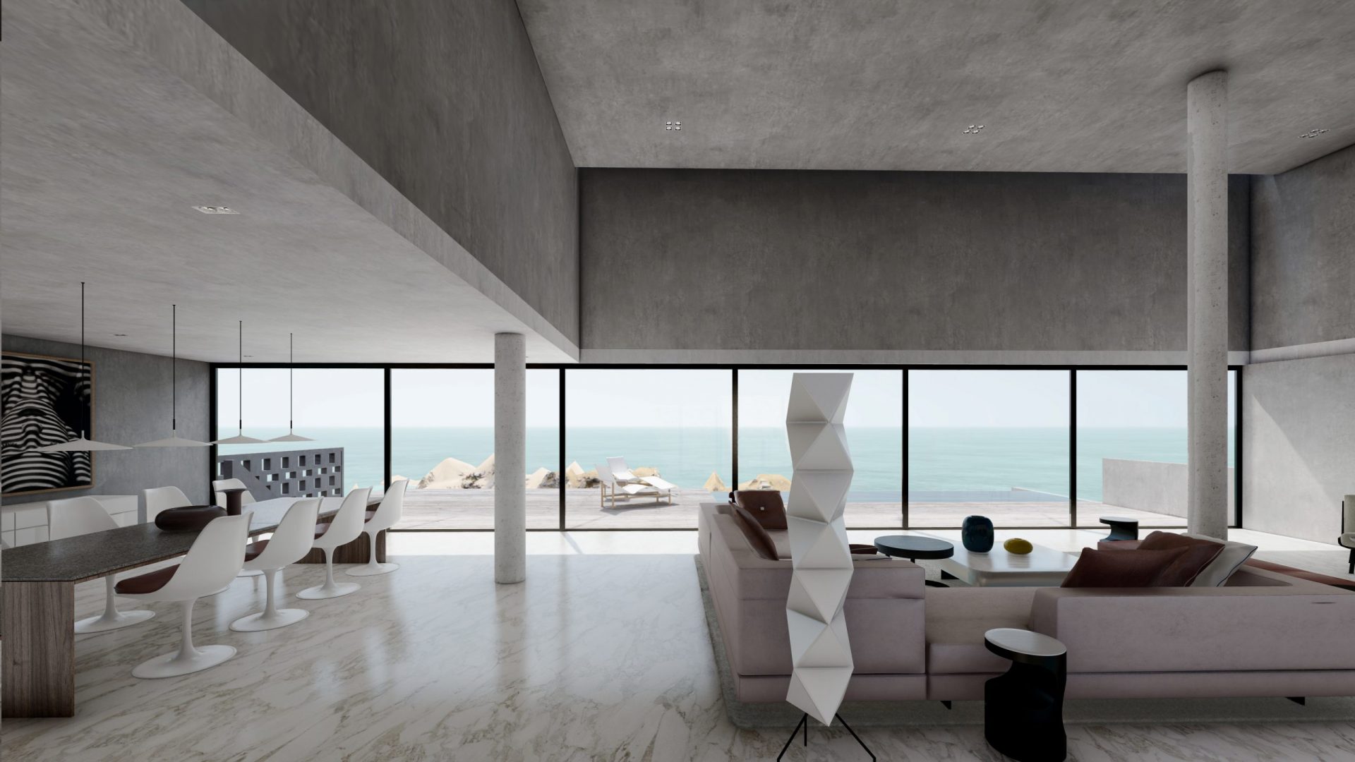 La casa pretende beneficiarse de las condiciones que ofrece el solar enfrentando sus espacios al océano, teniendo en cuenta su topografía, se ocupa con la forma de aterrazamiento escalonado para aprovechar esta privilegiada ubicación. El propósito es sacar ventaja de las vistas encuadrando el paisaje exterior, objetivo que se logra mediante las fachadas completamente vidriadas.