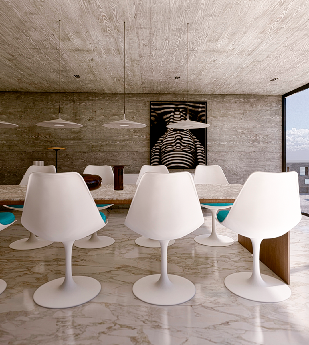 Los límites entre lo exterior e interior se disuelven en una continuidad que es posible mediante la trasparencia, entendiendo que no son espacios opuestos, sino que son espacios compartidos en una continua comunicación